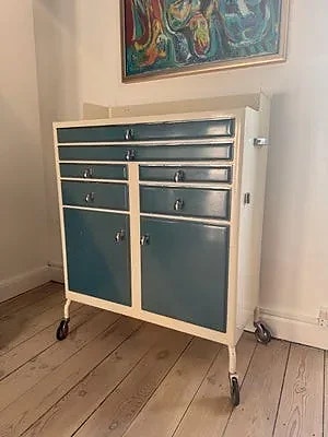 Måler 71cm i højden, 27cm i diameter og selve skålen, hvor champagnekøleren skal stå, måler 17,5cm i diameter og 10cm i højden.
