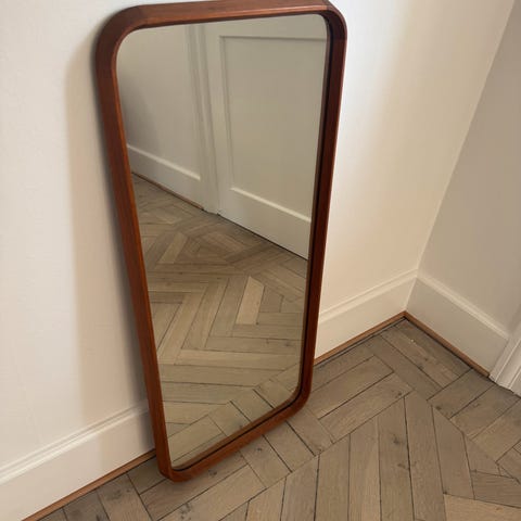 Gammelt smukt teaktræs spejl fra slut 60'erne - start 70'erne.
