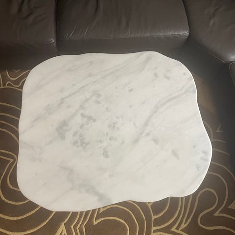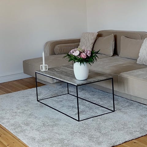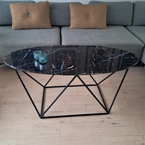 Luca sofabord, Bordet er i lys marmor og med stel i sort stål. Der findes også en mindre udgave, som er på en anden annonce.