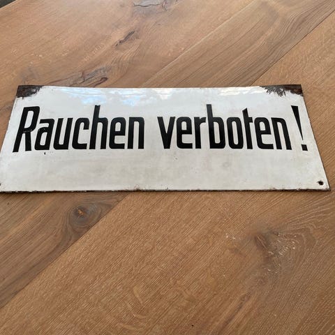 Rendyrket tysk retro med et gammel metalskilt som har hængt i de tyske toge i 1950'erne og 60'erne.
