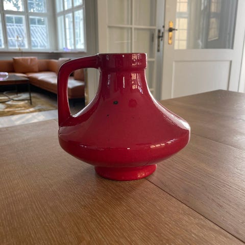 Bedårende lille West Germany vase på 28cm i højden i den fineste limegrønne nuance.