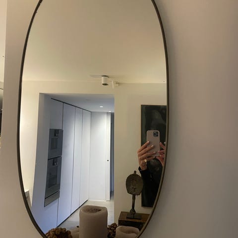 Et virkeligt lækkert rundt massivt messingspejl på Ø60