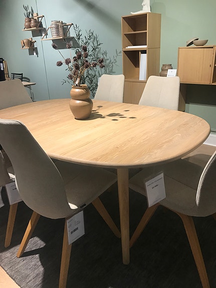 ✅Massiv egetræ, inden snydekanter, 4 cm i røgfarvet. Krdsstel stel så der ingen bordben er til at irritere