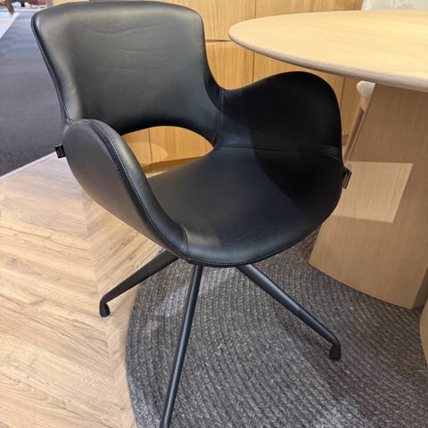 Hjort Knudsen spisestol med drejestel i sortlæder og sortlakeret stålben "sælges kun som 4 stk."