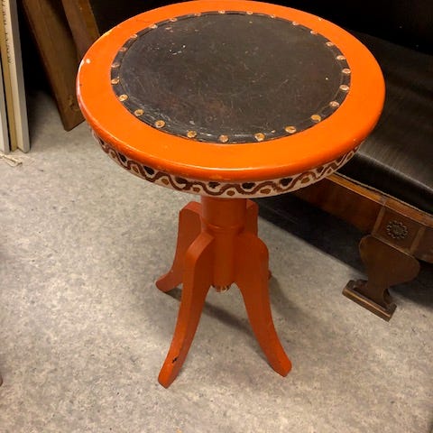 Gammel værksteds skammel m/ læder sæde