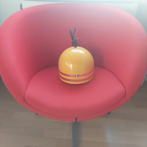 Den er tysk og fra 1960'erne. Og den er designet af den ikoniske lampedesigner Richard Essig.