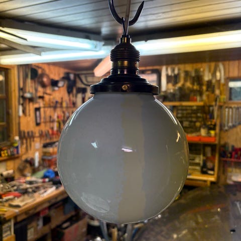 Hvid glaskuppel (stor café pendel) fra 1960'erne
