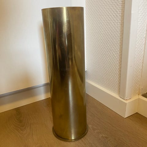Skyttegravskunst, messing lysestager til bloklys lavet af patronhylstre fra 1937.