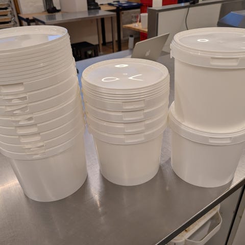Ubrugte, fødevaregodkendte plastspande