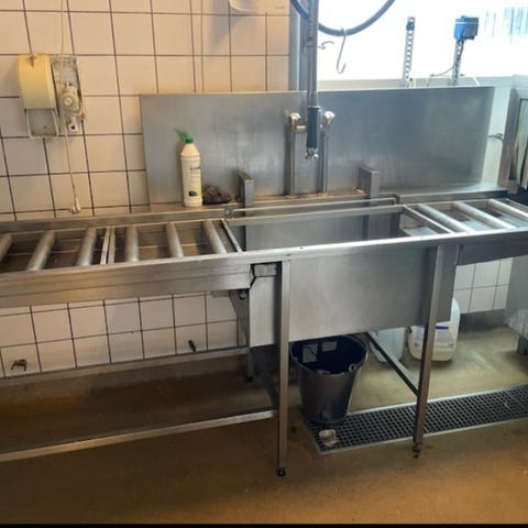Forskyllebord B1810 X D650 X H910 MM. Med Bakkebane og Bagkant Vask B400 X D500 X H910