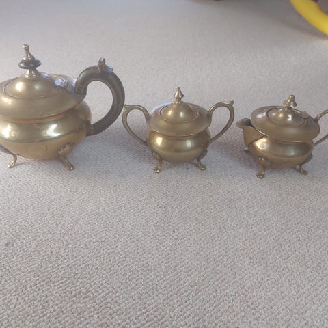Messingkande x 2, Messing, 200 år gl., 2 Antikke gamle messingkander samt 1 ildsted