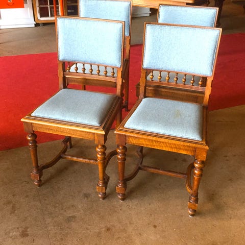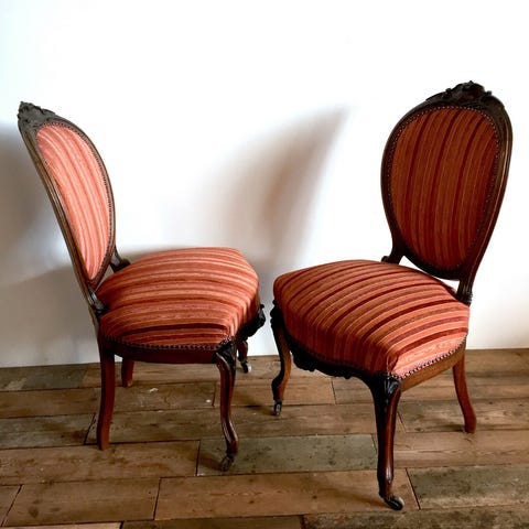 Et par renaissance armstole af rigt udskåret egetræ. Cirka år 1900. Til ompolstring. Sælges kun samlet til fast pris.