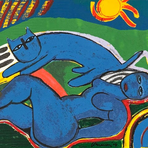 Corneille: Komposition med kvinde og kat. Sign. Corneille, 1998