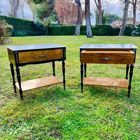 Flotte sideborde senge borde er metal stel med marmor plader.