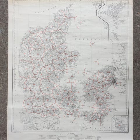 Vintage kort over Århus bugt og tilstødende farvande. Skala 1 : 70.000. Kort nr. 112. Udgivet af det kongelige Søkort-Arkiv, København, Feb. 1939. 106,5 x 74,5 cm.