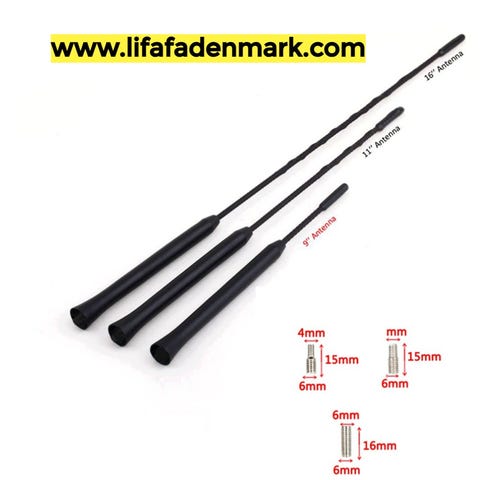 Denne justerbare antenne passer kun, hvis din bil har ekstern antenne og bruger den samme universalskruestørrelse, som er vist i denne liste. De fleste kunder køber denne antenne til stylingformål, og modtagelse/signalkvalitet er omtrent den samme som standardantenne.