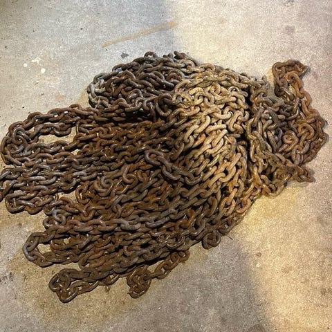Kæde i kraftig Bronze,220 cm lang,tykkelse på led 1,5x1,5 cm.