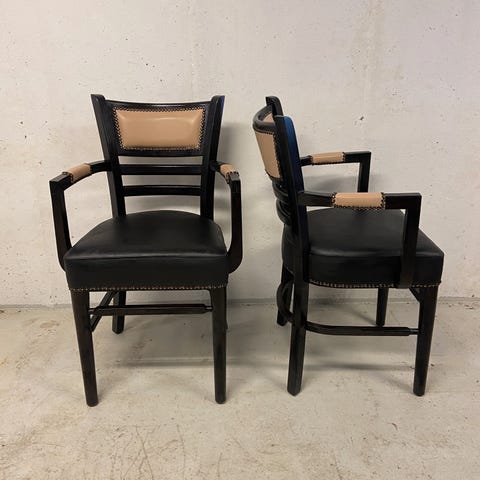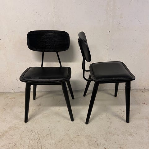 2 stk stole med sort læderpolstring fra outlet. Sælges samlet til 500kr.