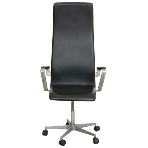Arne Jacobsen Højrygget Oxford kontorstol i gråt læder