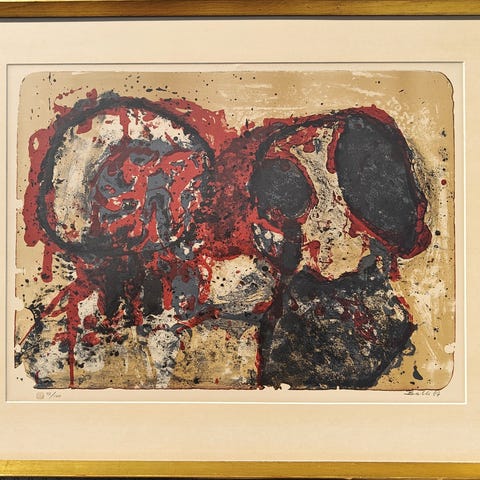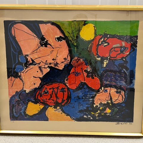 Mogens Balle. Komposition. Litografi, 26/100. Sign. Balle. 60x40 og fremstår i guld aluramme.