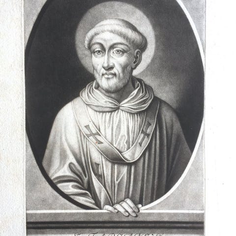 Tryk / mezzotint i form af Pave Pontianus. Signeret samt nummeret J. S. Negges Sc. et. excud. A.V, 20. Trykplade 24 x 15 cm. Blad 33 x 21,5 cm. Se fotos for stand.