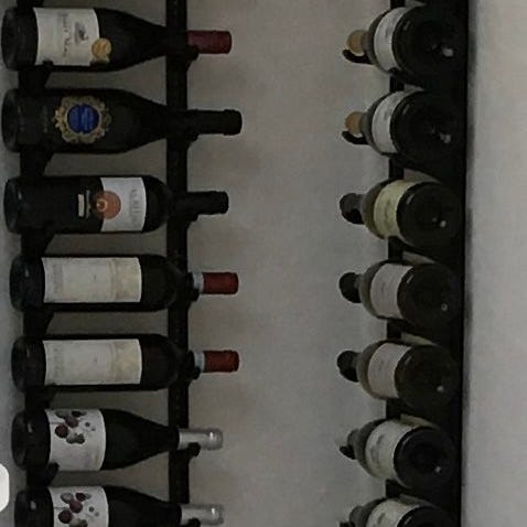 Anderledes transportabelt opbevaringsmøbel til vin, udført i træ, finér og metal.