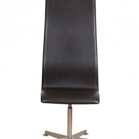 Arne Jacobsen højrygget Oxford stol, i originalt valnød farvet essential læder. Stolene er fra 2004, og fremstår i flot stand dog med let patina på læderet. Alle stole kommer fra samme sted og fremstår i samme stand og med drejelig fod.