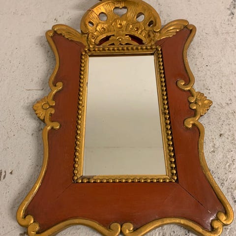 Herskabeligt og smukt, udført i støbt metal, med sirlige udsmykninger.