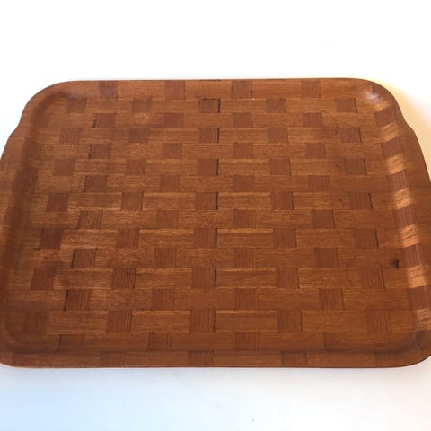 Rund Langva bakke af formpresset og lakeret mahogni. Stemplet i bunden. Diam. 33,5 cm. I fin stand.