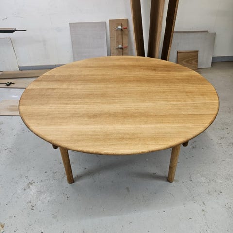 Mål: Bord: H: 75, Ø: 120-170 cm. Stole: H: 71,5 B: 45 D: 50 SH: 44 cm.