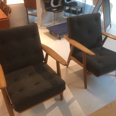 Wegner cigar stole. 2. stk m. skammel. Ny polstrede