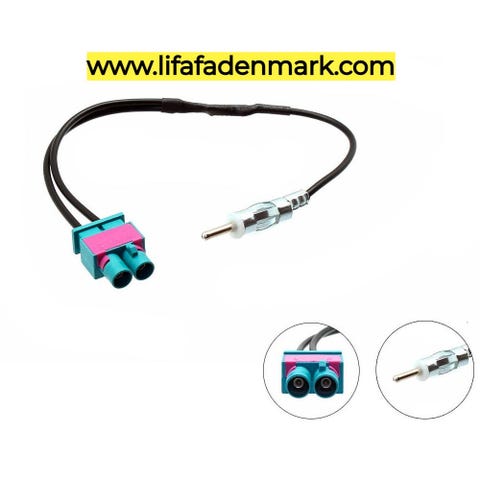 Dette særlige kabel er til modeller, hvor antenne forbindelsen er en enkelt fakra-type, og du installerer en radio eller enhed med en dobbelt fakra-antenne indgang