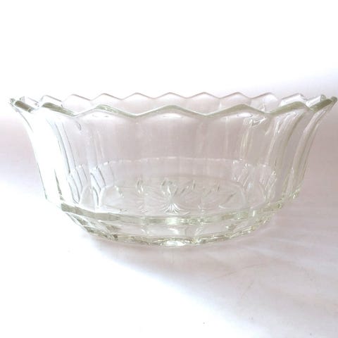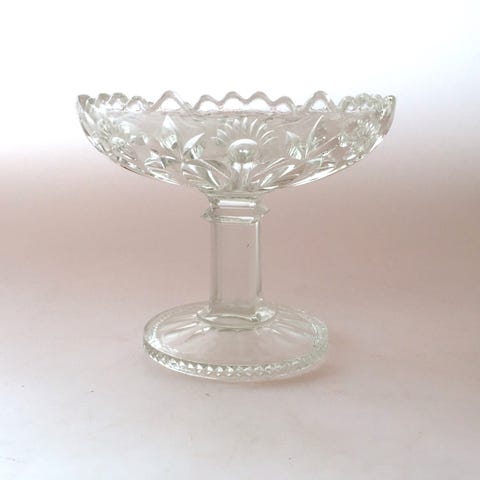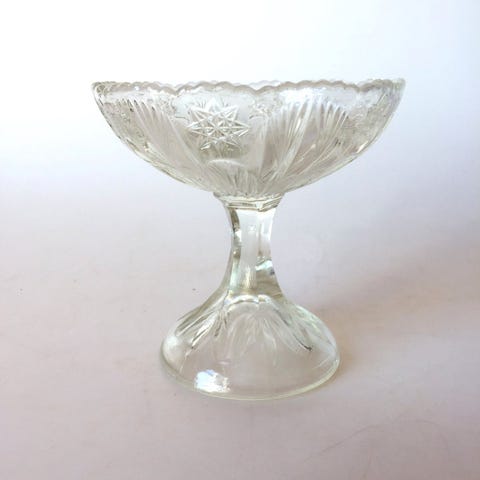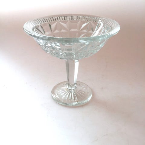 Skål på fod af slebet glas. H. 18 cm. Diam. 17,5 cm. I fin stand uden skår.
