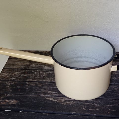 Kasserolle i rød emalje fra Dan Kok / Glud & Marstrand. Rummer cirka 1 liter. Diam. uden håndtag 15,5 cm. I pæn stand, men med lidt enkelte afskaldninger i emaljen (se fotos).