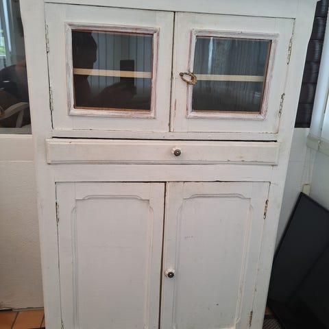 Gammelt skab i pæn størrelse, som f.eks. kan benyttes som dekorativt overskab på rette sted i boligen.