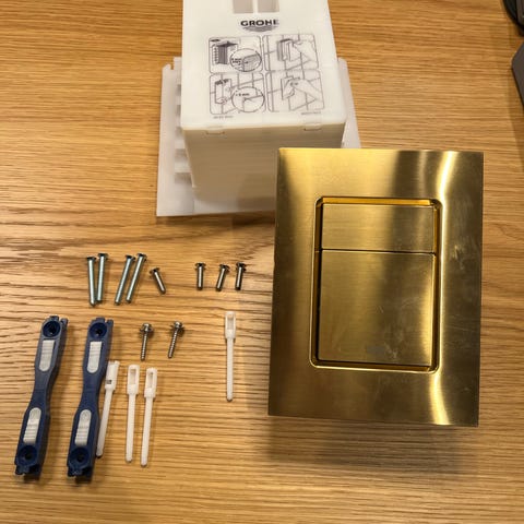 Grohe Nova Cosmopolitan 2 skylds betjeningsplade / trykknap / skylleknap / trykplade / knap i krom ny og ubrugt i original kasse med monteringsskruer og manual.