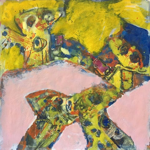 Komposition. Signeret J. U. Friis. Akryl på papir. Med passepartout og sort ramme. Lysmål 29 x 29 cm (ramme 52 x 52 cm). (J8)