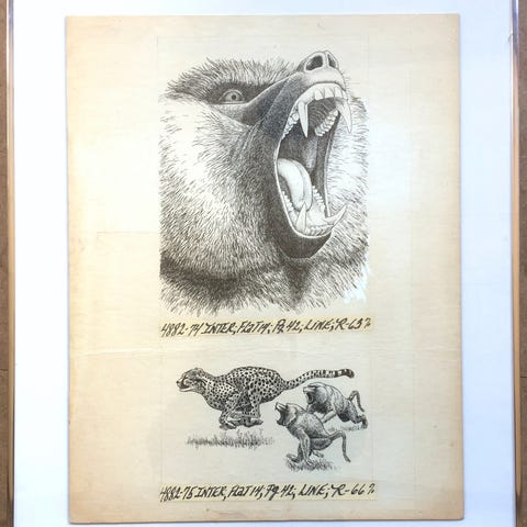Studie af dykkende pelikan. Usigneret. Original illustration til ubekendt tidsskrift. Tusch på papir. I ramme. Ramme: 31 x 41 cm.