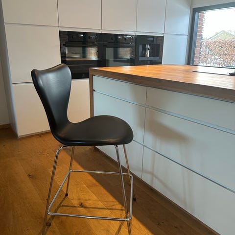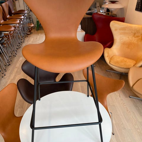 Arne Jacobsen barstol betrukket med mokka classic læder