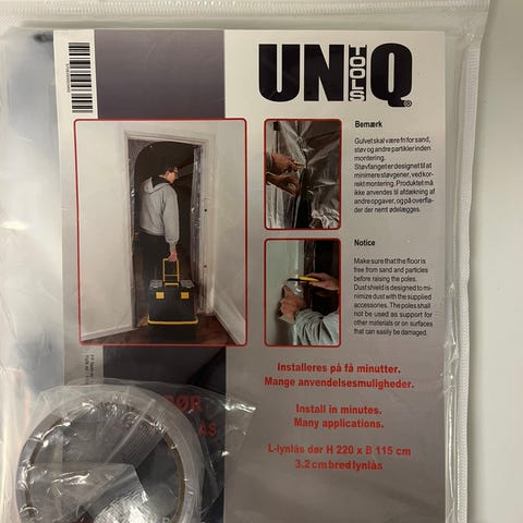 Består af 1 stykke tykt plastik str 120x220, samt en lynlås på 220 cm, til påmontering.