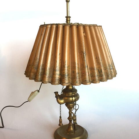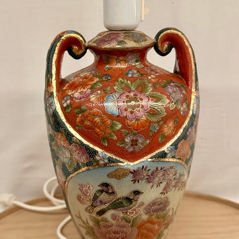 Antik japansk bordlampe af porcelæn