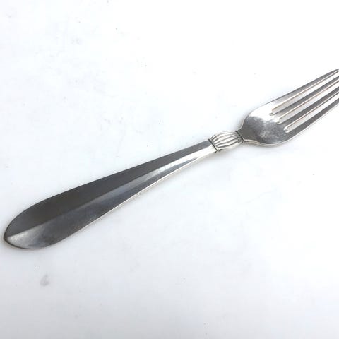 Dobbeltriflet kagegaffel af tretårnet sølv. Udgået fra Carl M. Cohr. L. 14,1 cm. Vægt 21,9 gr.