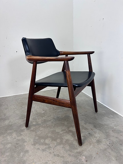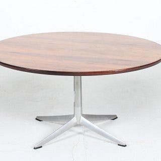 Hw Klein rundt sofabord i spejlskåret palisander på tilspidsede ben . Mål : 54 cm H - diameter 103 cm . Fremstår med enkle brugsspor . Levering kan aftales . Vare nr 3159