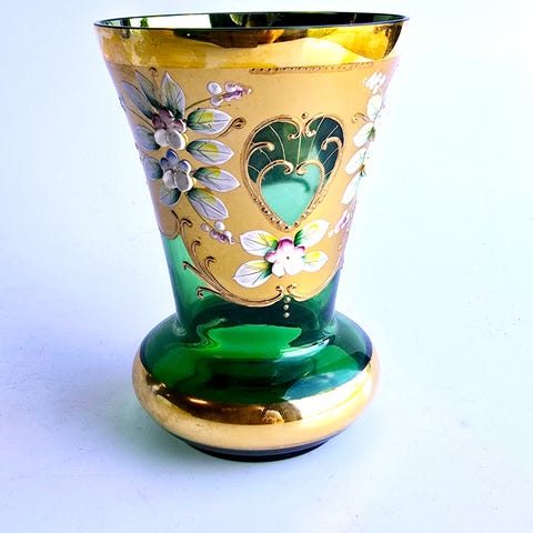 Fin lille vase af slebet krystal i form af hat. I fin stand uden fejl. Højde inkl. hank 21 cm.