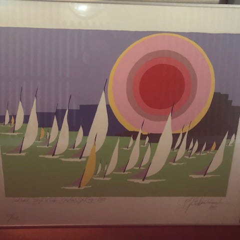 Indrammet eksemplar, nr. 38/250, udloddet, som 3.præmie i forbindelse med Gordons Gin Cup ved Vedbæk i 1988.