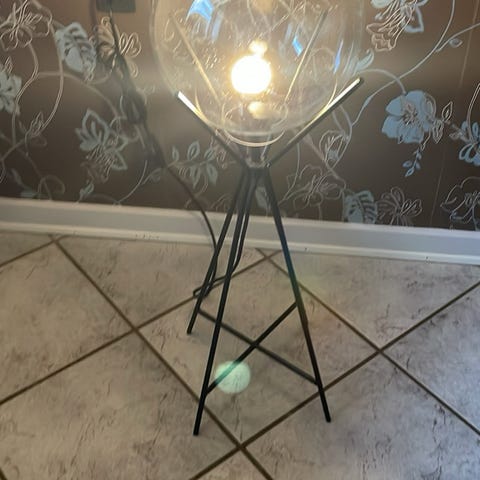 Dansk produceret gulvlampe i hvid plast med skærm i acryl . Mål : 133 H - ø 39 cm . Fremstår i pæn brugt stand . Vare nr 4140