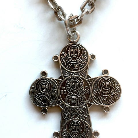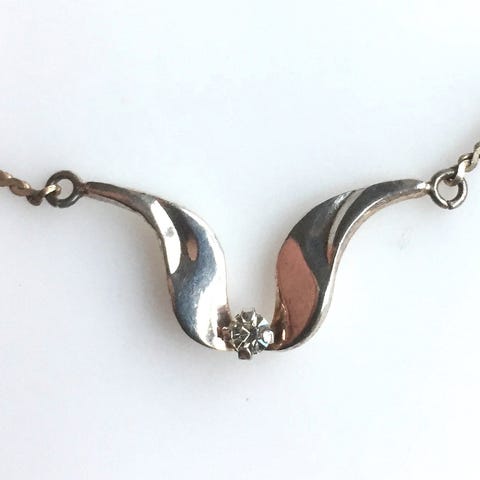 Bijouteri halskæde af delvist forgyldt metal prydet med hestehoved vedhæng med facetterede sten. Længde 42 cm. Vedhæng 5,2 cm. I fin stand.