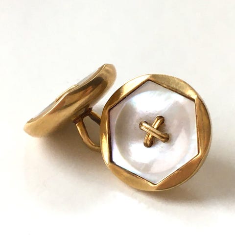 Par ældre brystknapper af guld med perlemor
