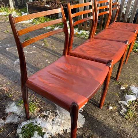 NO Møller NO-62 lænestol i palisander fra J. L. Møllers Møbelfabrik. Stolen er fra 60'erne og fremstår i flot stand med flot patineret læder.