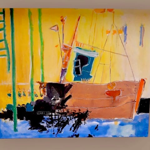 Farverigt motiv, umiddelbart forestillende en Piranha/Piratfisk, eller …….